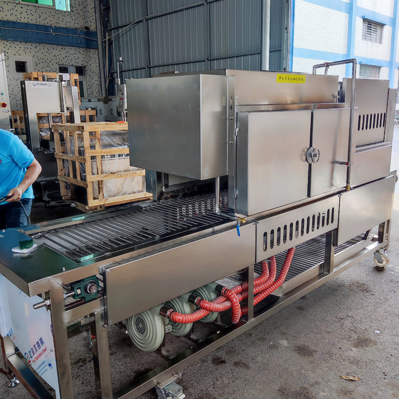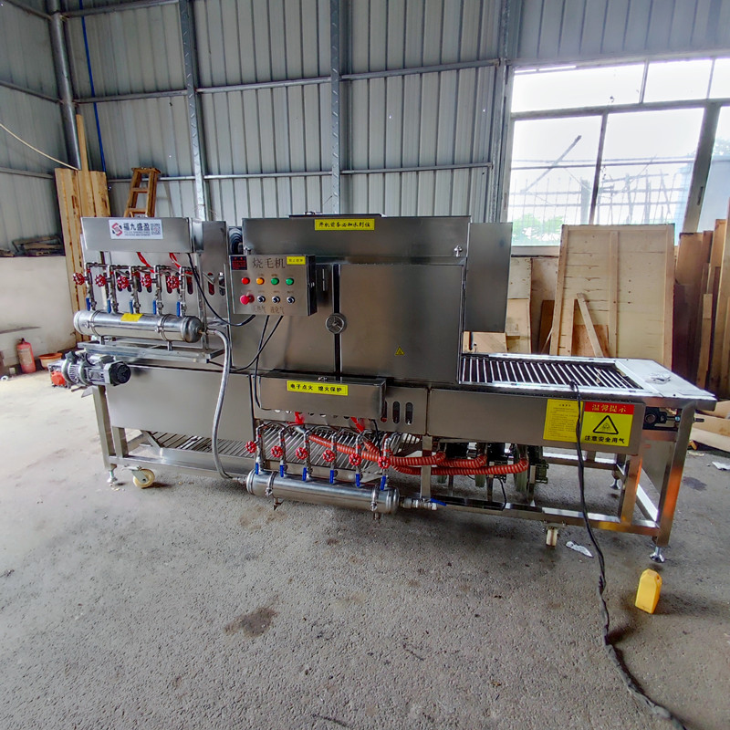 2024年8月(yuè)23日、坐標廣州九盈機械公司和福(fú)九盛盈食品機械公司綜合廠區;新型大(dà)豬腳燒毛機整裝待發;該設備主要用(yòng)於豬腳、肘子、清(qīng)除肉皮表層的長(zhǎng)毛、具有高效安全(quán)、操作簡單的特點、特別是根據客戶生產物料的大小(xiǎo)可以(yǐ)進行、輸(shū)送(sòng)變速、火苗大小調(diào)整(zhěng)、本機具有天然氣(qì)和液化氣雙用(yòng)的功能;采用上層(céng)5頭噴火、下(xià)層6頭噴火;共計11個噴火頭360度全(quán)覆蓋燃燒;
